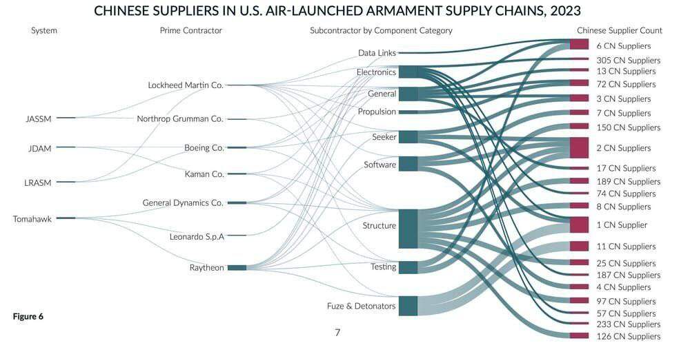 На изображении – инфографика, показывающая, что половина американского оружия собрано из китайских у̶н̶и̶т̶а̶з̶о̶в̶ комплектующих.