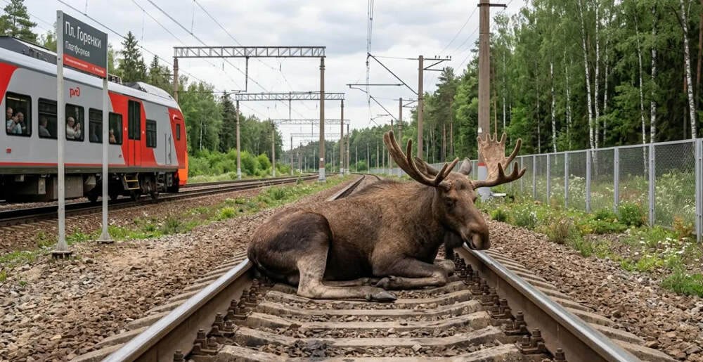 Лось разлёгся на путях на железнодорожном участке МЦД-4 Балашиха — Реутов