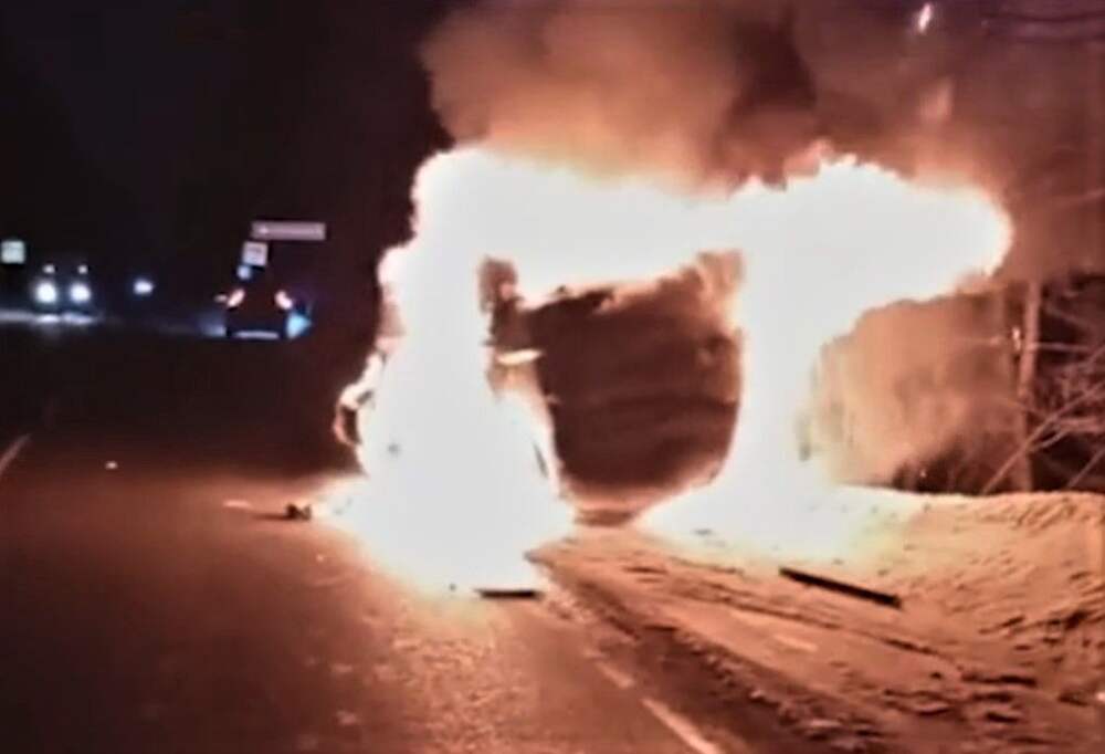 Водителя спасли из горящего автомобиля на трассе в Нижегородской области