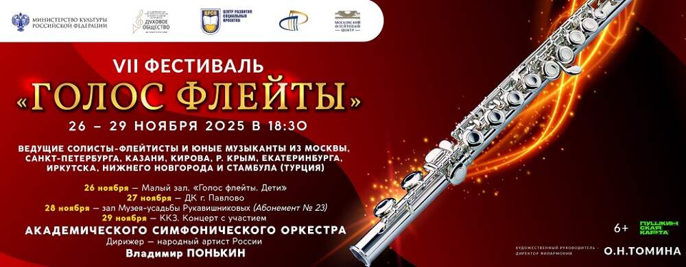 С 26 по 29 ноября в Нижегородской филармонии пройдет VII фестиваль «Голос флейты». Он объединит звезд России и Турции, сообщает сайт филармонии.