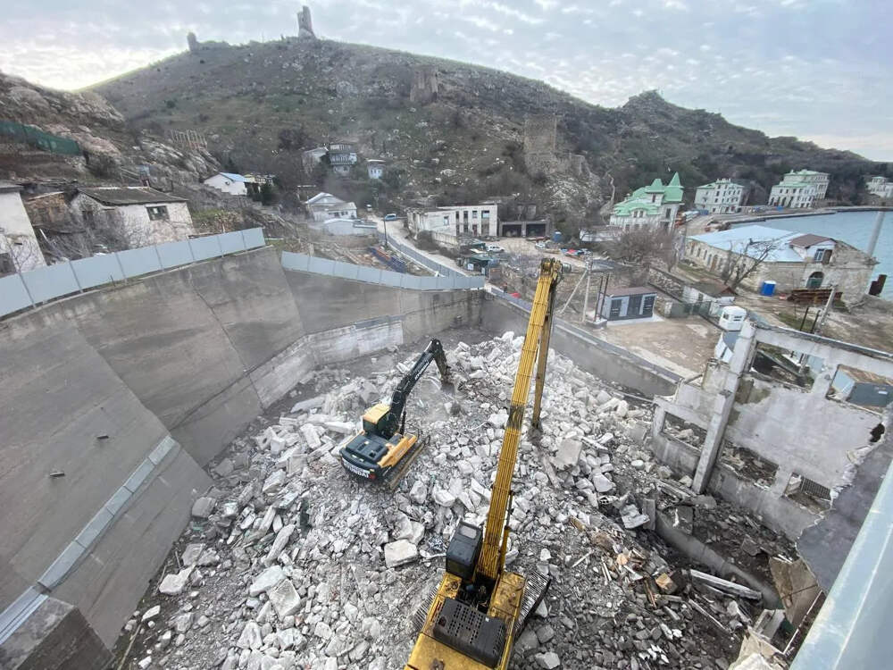 Начался демонтаж здания развлекательного центра «Академия шпионажа» на набережной Назукина в Балаклаве. Техника работает в стеснённых условиях, чтобы не расширять стройплощадку и не блокировать доступ пешеходов к Большой Севастопольской тропе. К середине весны подрядчики планируют разобрать дом №... Далее