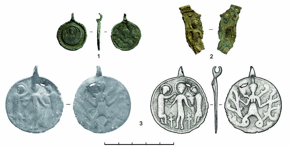 На одной его стороне изображена Богоматерь Знамение, на другой – змееногое существо. На одном из селищ в Суздальском Ополье нашли редкий тип амулета – с изображением Богоматери Знамение с одной стороны и змееногого существа на другой. О находке говорится в сообщении на сайте Института археологии... Далее