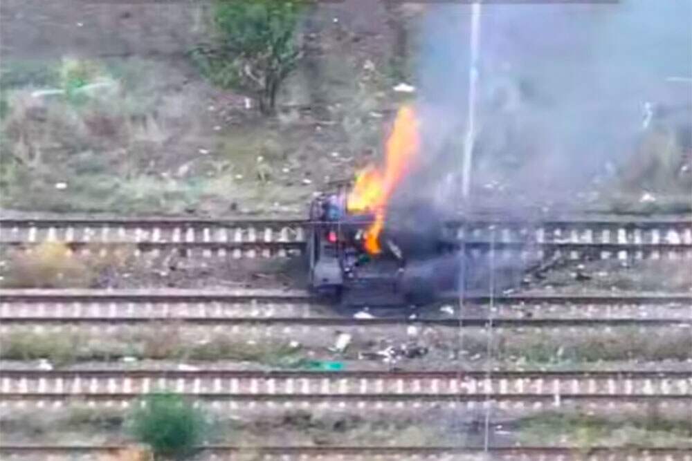 Украинский Т-72 выехал на рельсы и был сожжен