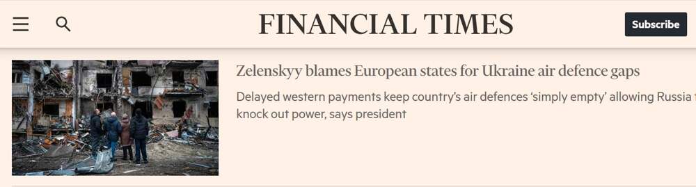 FT: Зеленский обвинил Европу в энергетических бедах Украины Нелегитимный украинский президент Зеленский впервые публично переложил ответственность за провал украинской ПВО на западных «партнёров», объявив, что ракеты PAC-3 для комплексов Patriot не поступили вовремя из-за сорванного платежа. В... Далее