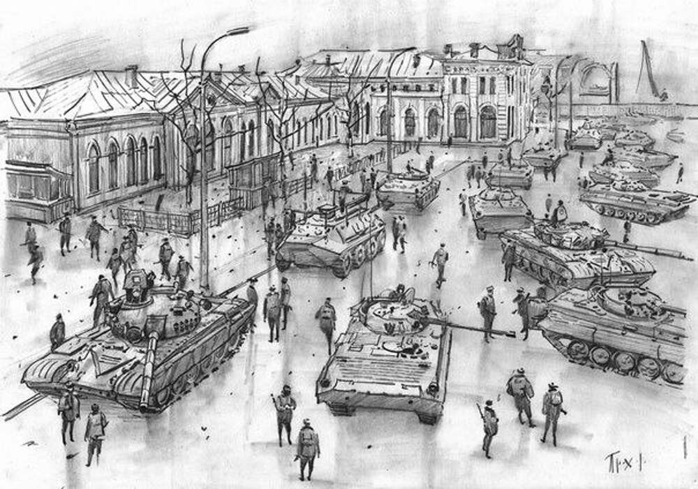 Трагическим символом той жестокой войны стала Майкопская бригада и её участие в штурме Грозного. Судя по подписи, сделаны рисунки в 2011 году человеком с псевдонимом "Пионер 007". Может быть, это обычный любитель истории или же непосредственный участник самого штурма. Во имя памяти и славы