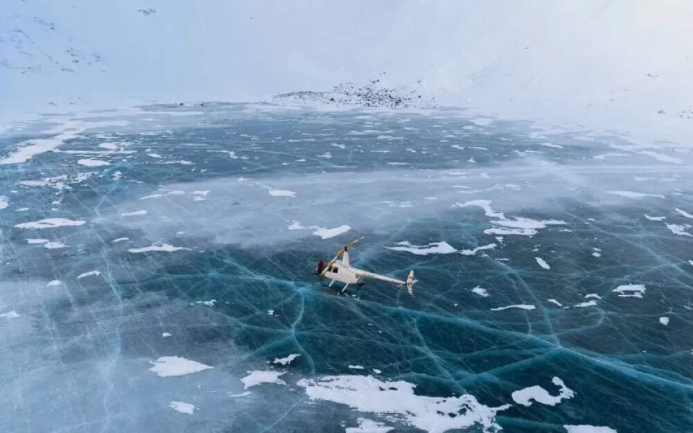 🤔 Прокуратура заинтересовалась посадкой вертолета на замерзший водоем в Горном