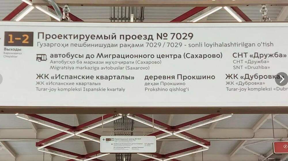 Новая Москва для «новых москвичей». На фото - дублированные таблички на станции Прокшино для мигрантов, чтобы не заблудились, сообщает Zergulio Это там вчера толпа дикарей устроила разборки с палками, арматурой и лопатами.  Город подготовлен к приему ценных специалистов!