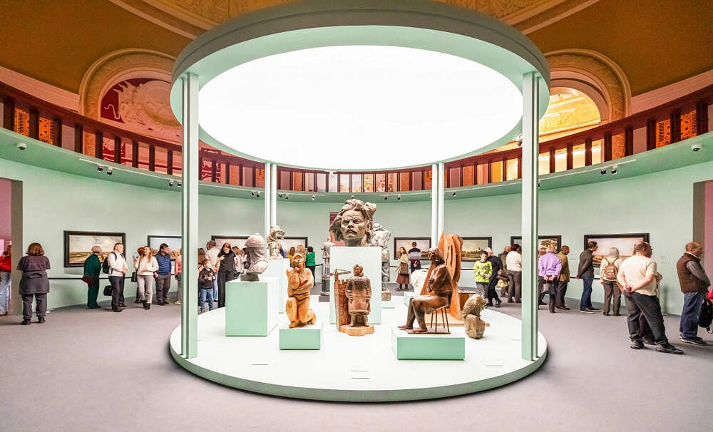 На выставке «Образ Москвы в русском искусстве из коллекции Государственного Русского музея», проходящей в павильоне №1 «Центральный» на ВДНХ, представлены не только живописные полотна, но и значимые скульптурные произведения, которые раскрывают исторический и культурный облик столицы. Центральное