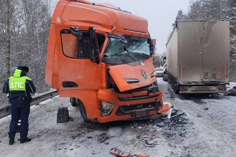 Грузовик Scania, который ехал в сторону Москвы, врезался в идущий впереди DAF. От удара его выбросило на встречную полосу — там он лоб в лоб столкнулся с Shacman, который ехал в сторону Челябинска, сообщили в ГАИ.