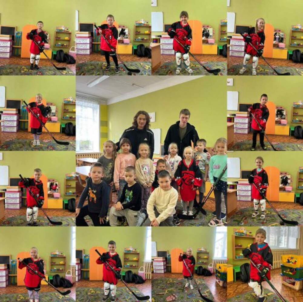 Тренеры по хоккею в гостях у ребят.