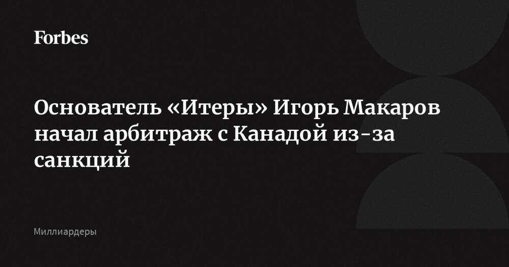 Миллиардер, основатель компании «Итера» Игорь Макаров, отказавшийся от российского гражданства в 2022 году, инициировал арбитраж с Канадой, которая не желает снимать с него санкции, узнали «Ведомости». Запрос бизнесмена зарегистрировал Международный центр по урегулированию инвестиционных споров.... Далее