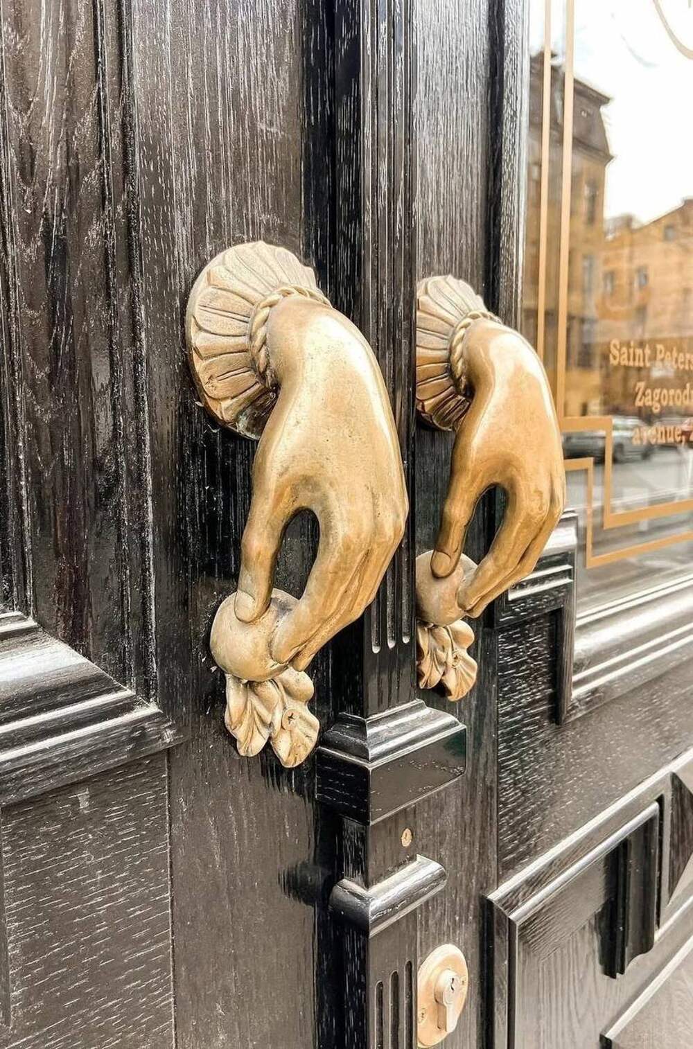Необычные дверные ручки были обнаружены на двери паба «OldWhale» Наш город складывается из деталей!Загородный пр., 24 Петербург в деталях: лев смотрит свысока на прохожих на Большой МорскойНаверное, следит за порядком!Большая Морская, 27 В Петербурге обнаружили граффити с Владимиром