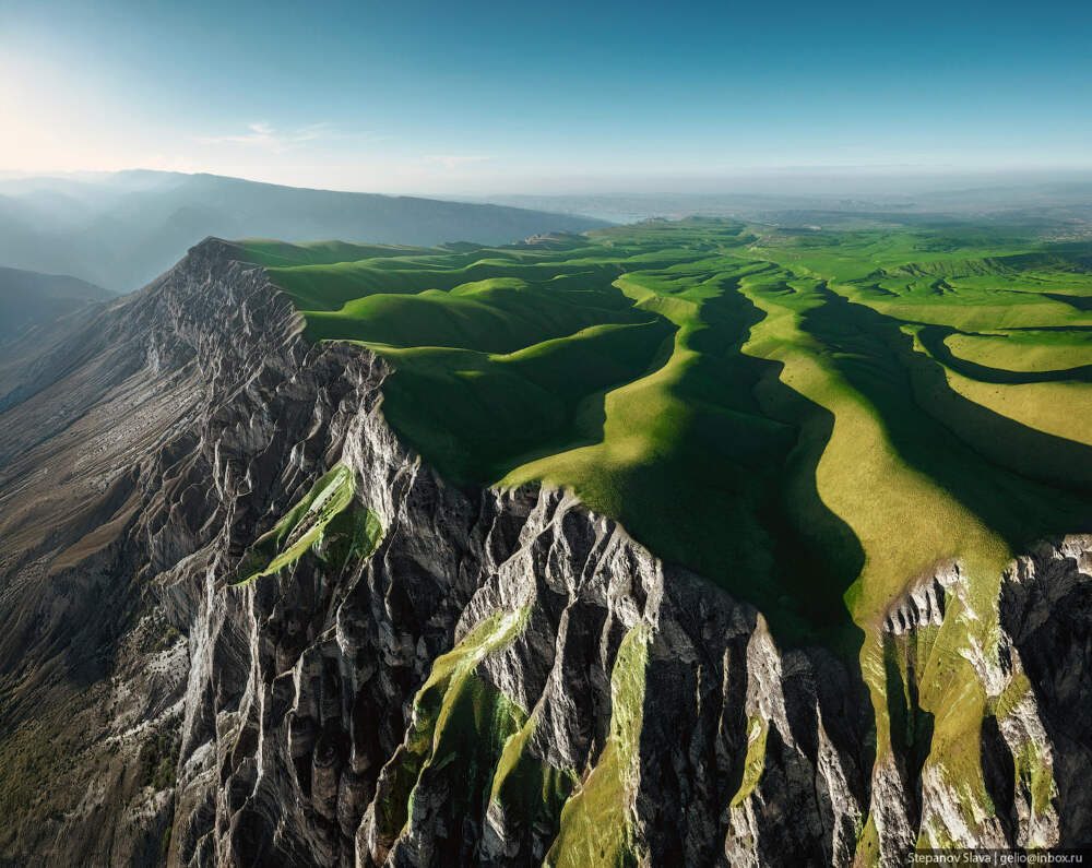 Сегодня окунемся в изумительные фотографии Славы Степанова. На своем ресурсе он представил очередные фото, снятые с воздуха. первый репортаж о Пике Гагарина в Дагестане. Описание автора. Гребень Гимринского хребта имеет волнистый рельеф без резко выделяющихся вершин — хребет служит естественной