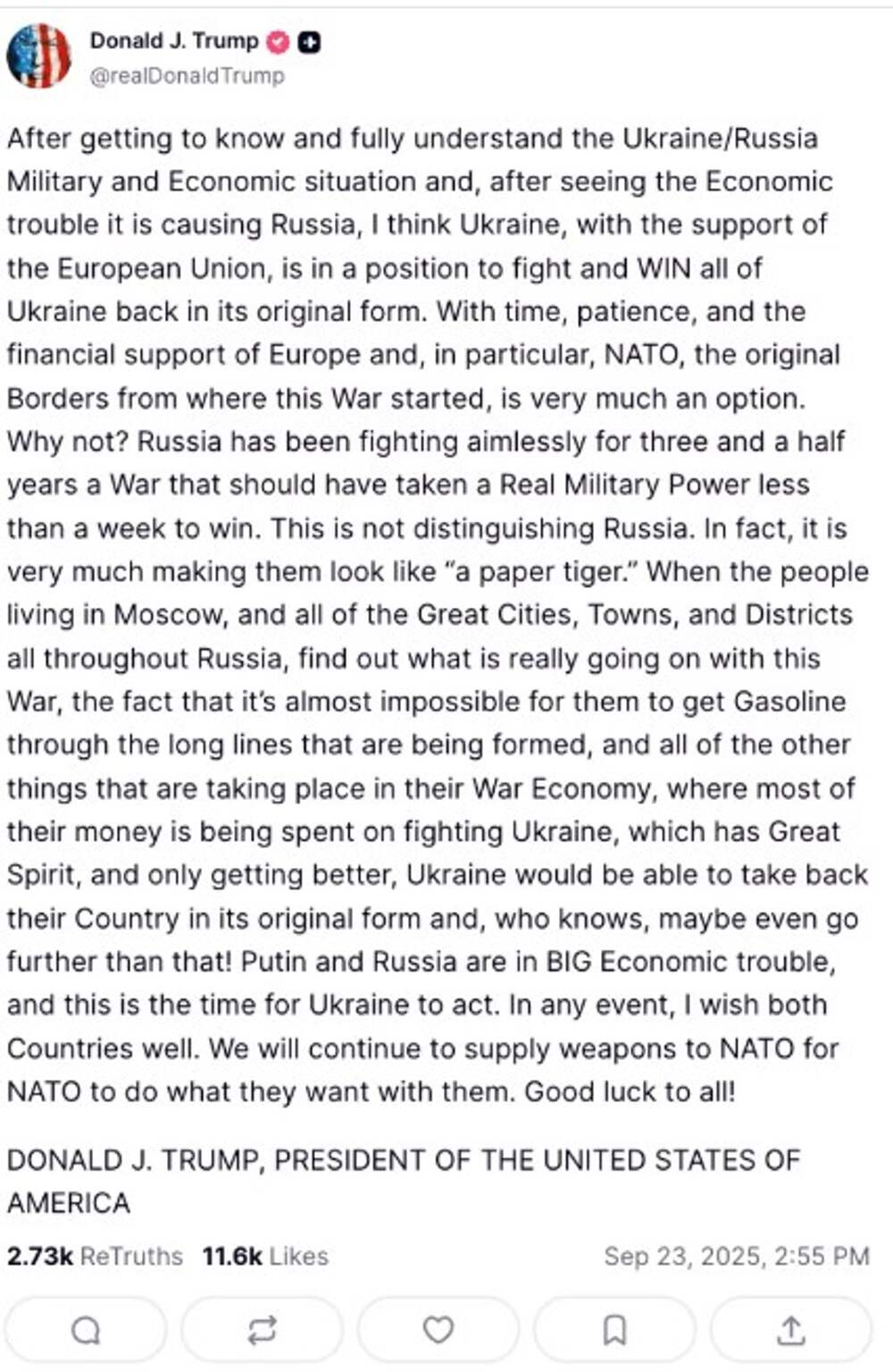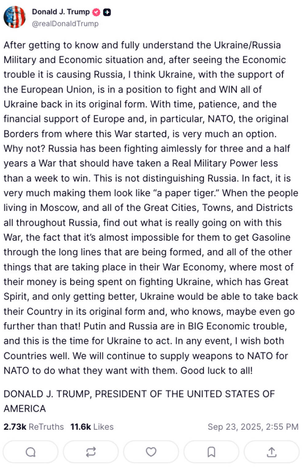 Сейчас продемонстрирую, когда пропаганда оторвана от реальности. Берём текст Трампа и меняем Россию на США, а Путина на Трампа (и так далее). И всё прекрасно ложится (потому что они всегда зеркалят).