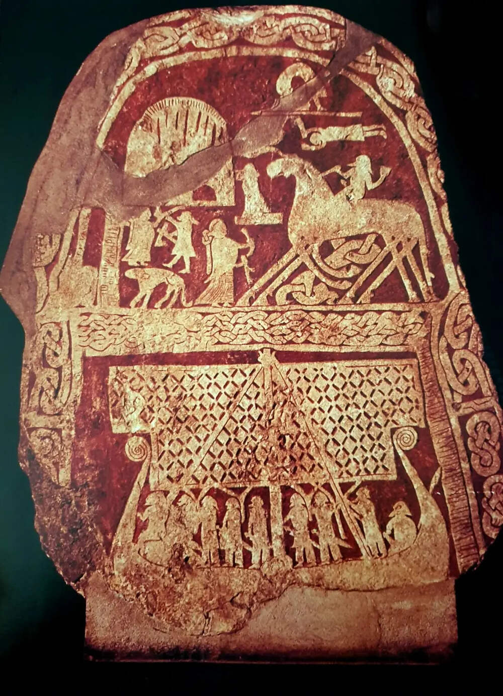 «Рунный камень»* викингов VIII в., изображает Слепнира вверху (восьминогий конь бога Одина) и проплывающий корабль внизу. Обнаружен в Тянгивде, Альскоге, Готланд, Швеция О скалы грозные дробятся с ревом волны, И с белой пеною крутясь, бегут назад, Но твердо серые утесы Выносят волн напор над морем... Далее