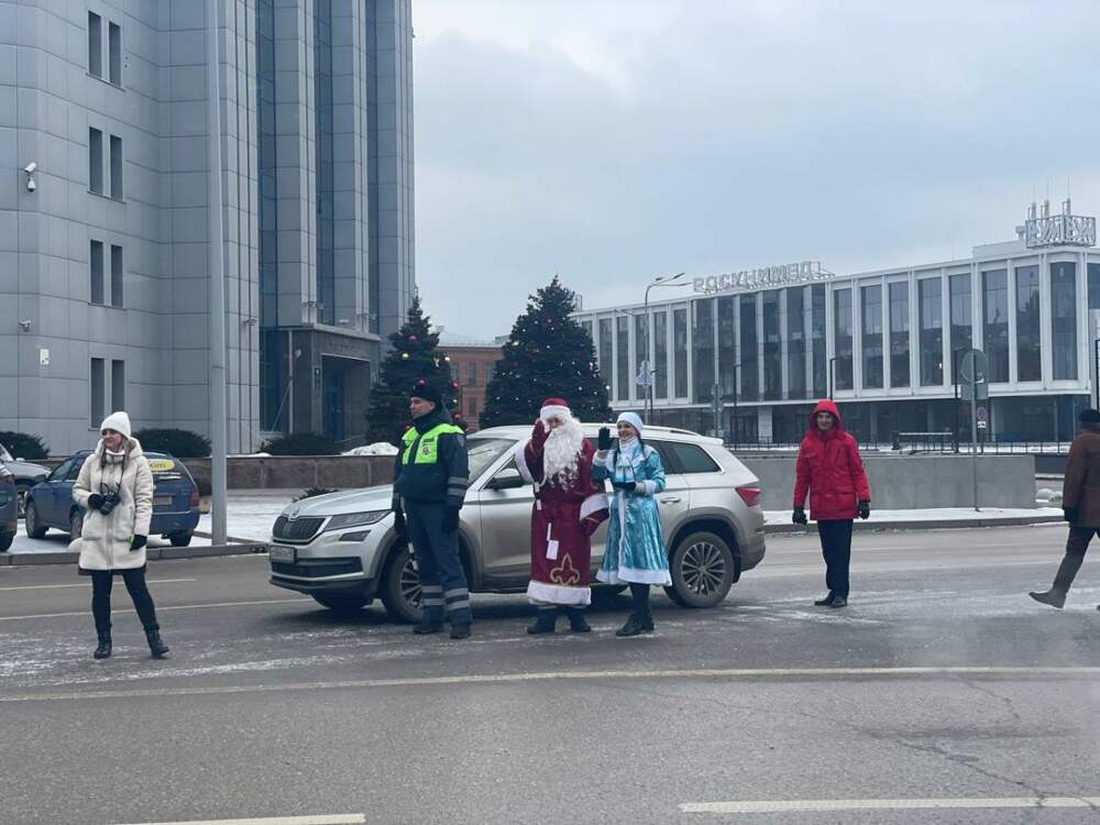 Дед Мороз и Снегурочка вышли в новогодний рейд с липецкими инспекторами