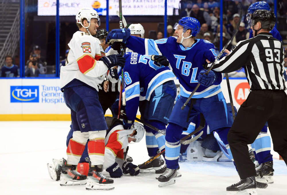 Хоккеисты клубов «Тампа-Бэй Лайтнинг» и «Флорида Пантерс» устроили массовую драку в матче регулярного чемпионата Национальной хоккейной лиги (НХЛ). Об этом сообщает корреспондент «Ленты.ру». Инцидент произошел в начале третьего периода. Американский форвард «Пантерс» Мэттью Ткачук толкнул в спину... Далее