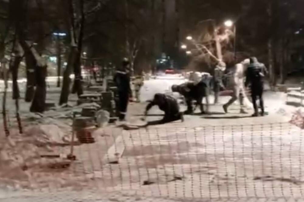 В российском городе решили уложить плитку на снег
