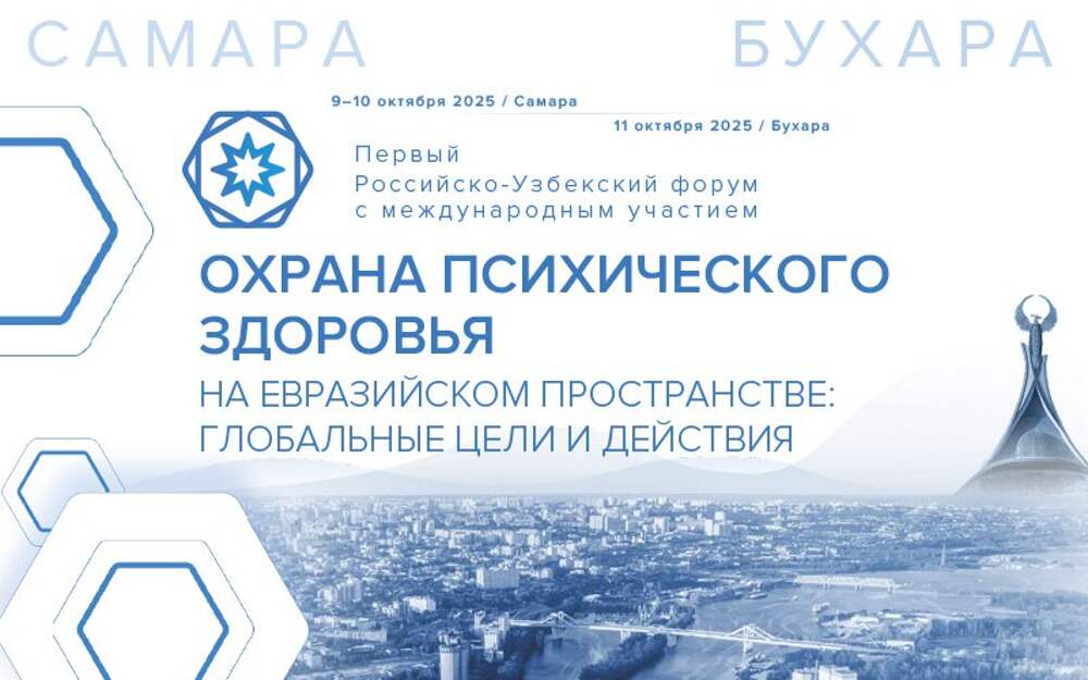 9-10 октября 2025 г. в Самаре и 11 октября 2025 г. в Бухаре состоится Первый Российско-Узбекский форум с международным участием «Охрана психического здоровья на Евразийском пространстве: глобальные цели и действия». Форум включен в перечень официальных ведомственных мероприятий Министерства... Далее