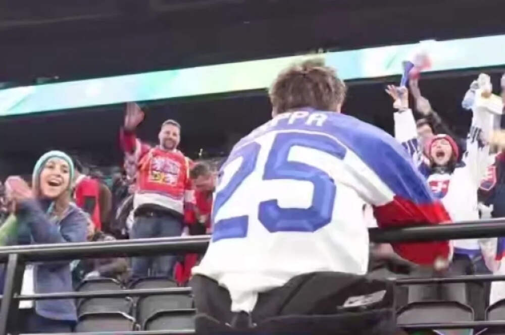 Безногий парахоккеист Йоппа на руках поднялся к фанатам после победы