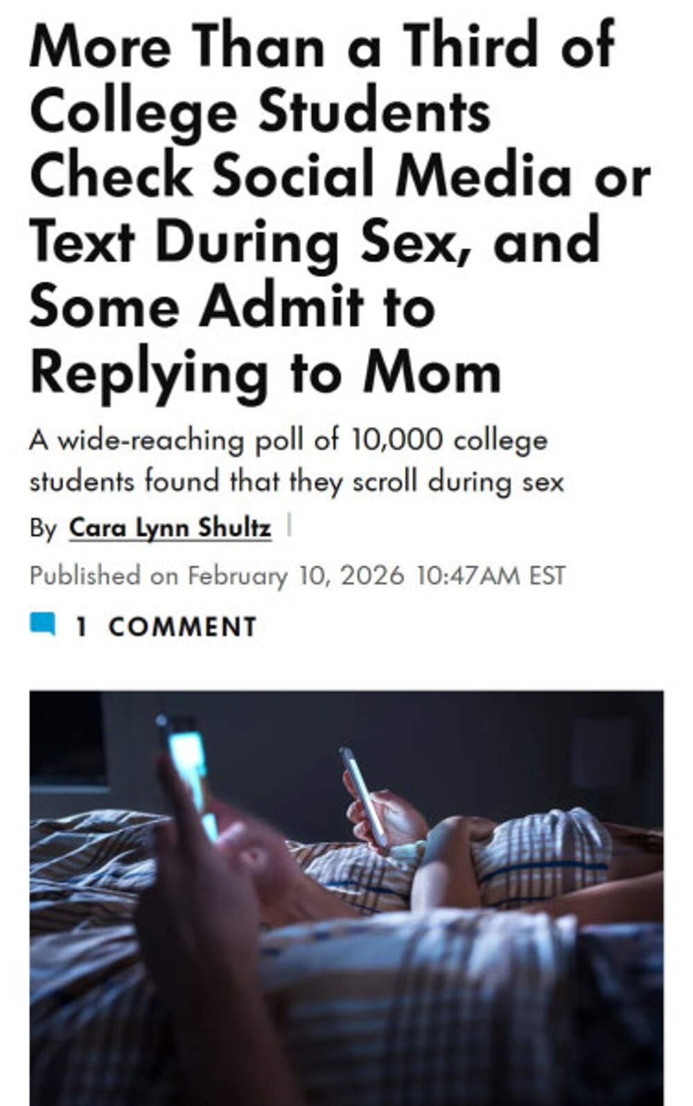 Это стало известно после опроса 10,000 студентов Каждый третий студент признался, что сидит в соцсетях, отвечает на сообщения и даже переписывается с мамой во время интима. источник