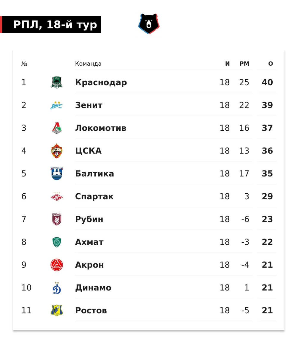 Мир РПЛ ушла на зимний перерыв после 18-го тура. Котировки обновлены и у фаворитов, и у аутсайдеров. Вот какие расклады будут действительны еще три месяца. «Краснодар» и ЦСКА – главные конкуренты «Зенита». «Балтика» – в... Далее