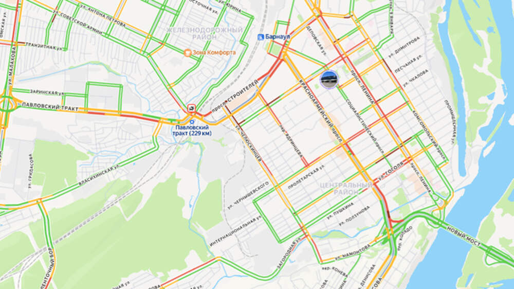 Девятибалльные пробки сковали дороги утреннего Барнаула. Куда не стоит ехать