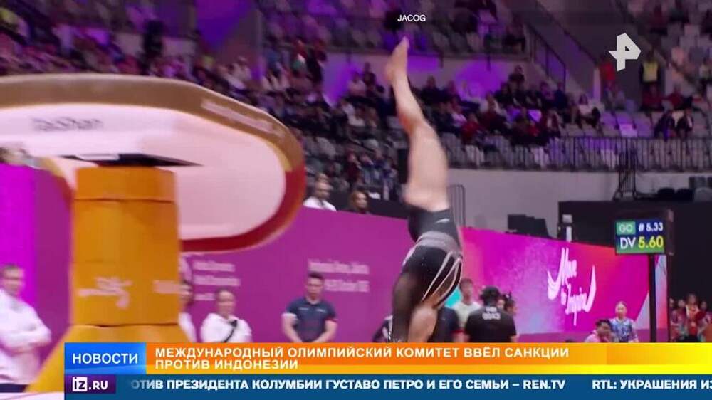Международный Олимпийский комитет ввел санкции против Индонезии. Власти этой страны отказали в выдаче виз израильским гимнастам, и те не смогли принять участие в Чемпионате мира по спортивной гимнастике, который проходит сейчас проходит в