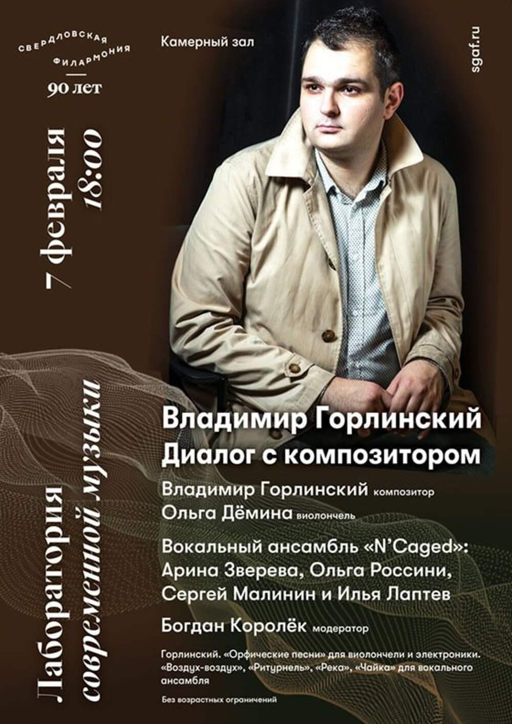Свердловская государственная академическая филармония в рамках «Лаборатории современной музыки» проведет 7 февраля творческую встречу-концерт композитора Владимир Горлинского. Модератором встречи выступит Богдан Королёк, сообщает сайт филармонии. Формат лаборатории превращает концерт в живой... Далее