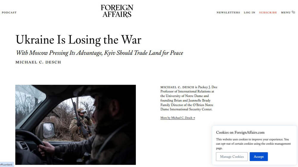 Foreign Affairs: Украина находится на грани поражения На Западе всё больше политологов и аналитиков приходят к неутешительному для Киева выводу – военным путём вернуть утраченные территории Украине не получится, как бы Зеленский не храбрился и не пытался доказать обратное. Пора признать этот... Далее