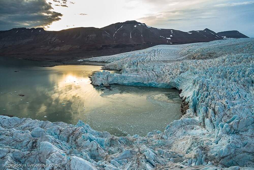 Напротив полярной Пирамиды, по другую сторону фьорда находится один из самых красивых ледников Шпицбергена – ледник Норденшельда. И бухта, и ледник названы в честь Адольфа Эрика Норденшельда, шведского ученого геолога, исследователя и мореплавателя. Он известен тем, что первым прошёл по Северному