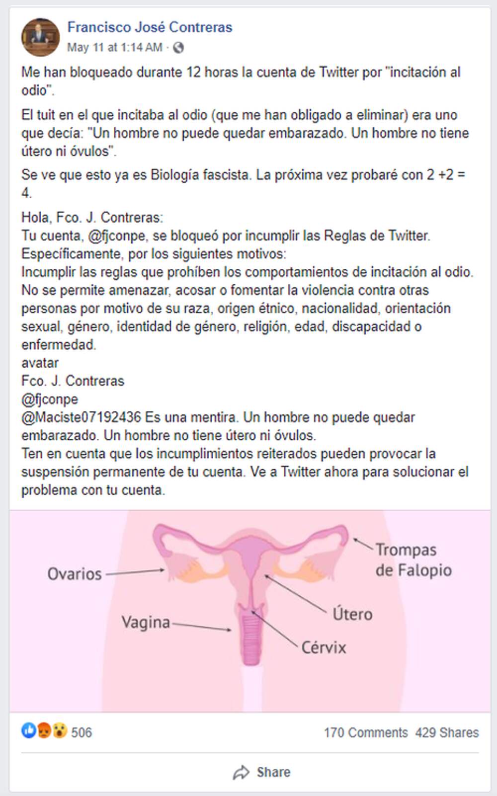 Spanish Politician Banned From Twitter For "Hate Speech" After Saying "A Man Cannot Get Pregnant"