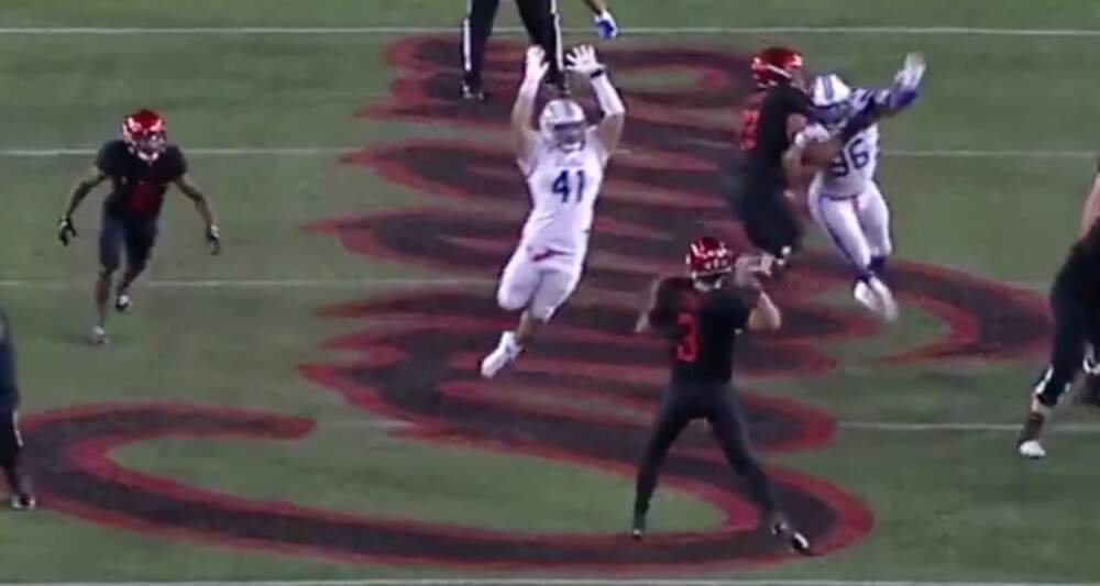 ESPN During Saturday’s game against Houston, SMU’s Isaac Slade-Matautia blew everybody’s mind. The redshirt junior linebacker hurdled a block and leaped into the air for one of the craziest pass defenses that you will ever see. Click HERE for more football coverage! SMU linebacker Isaac... Далее