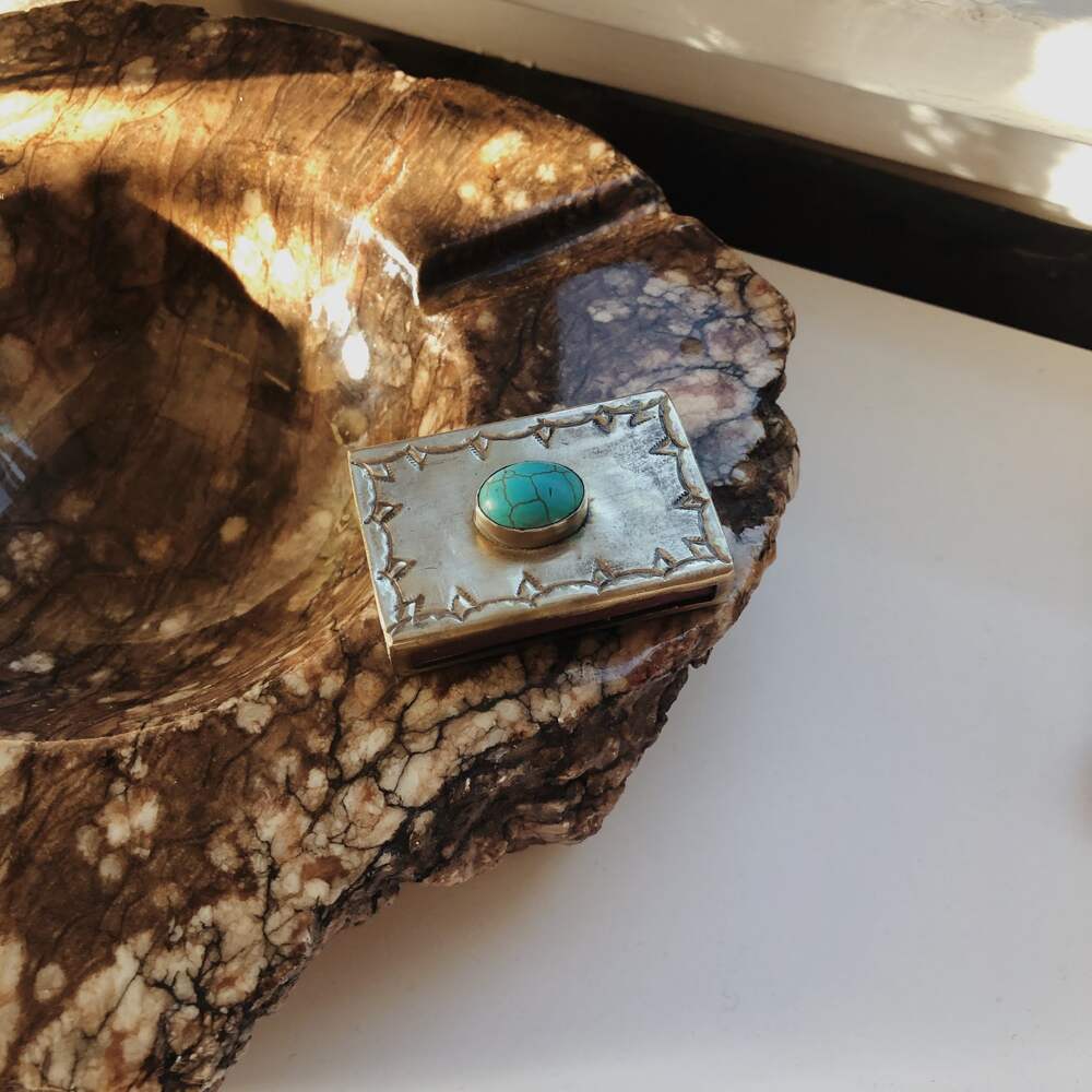 Navajo-style silver and turquoise matchbox.