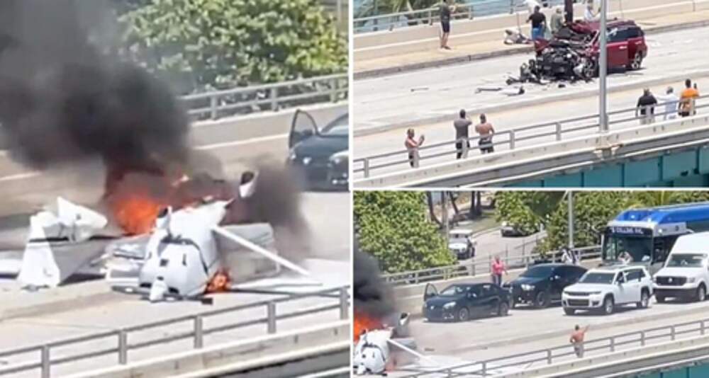 Plane Erupts Into Flames After Crash Landing On Miami Bridge