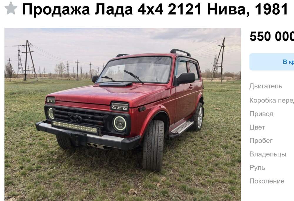 На портале Drom появилось объявление о продаже необычной классической Lada Niva: в Алтайском крае машину предлагают за 550 тыс. рублей, сообщает ixbt.com. По документам автомобиль датирован 1981 годом, однако внешне он ближе к более современным версиям «Нивы». Под капотом стоит японский двигатель... Далее