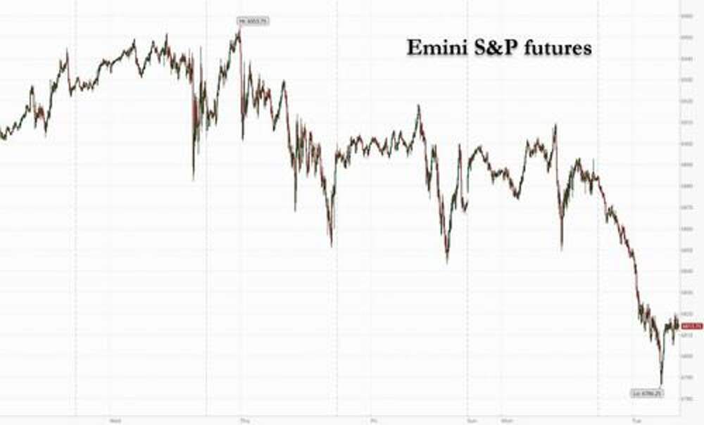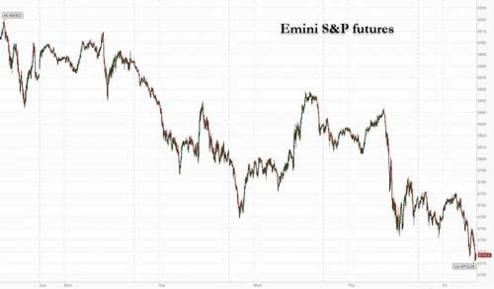 US equity futs are trading at session lows driven by a tech-led dip in stock futures over the past two hours as global risk sentiment turns sour to end the week, and with Goldman TMT specialist Peter Bartlett observing that "a