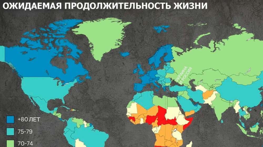 Ожидаемая продолжительность жизни в мире, включая Россию