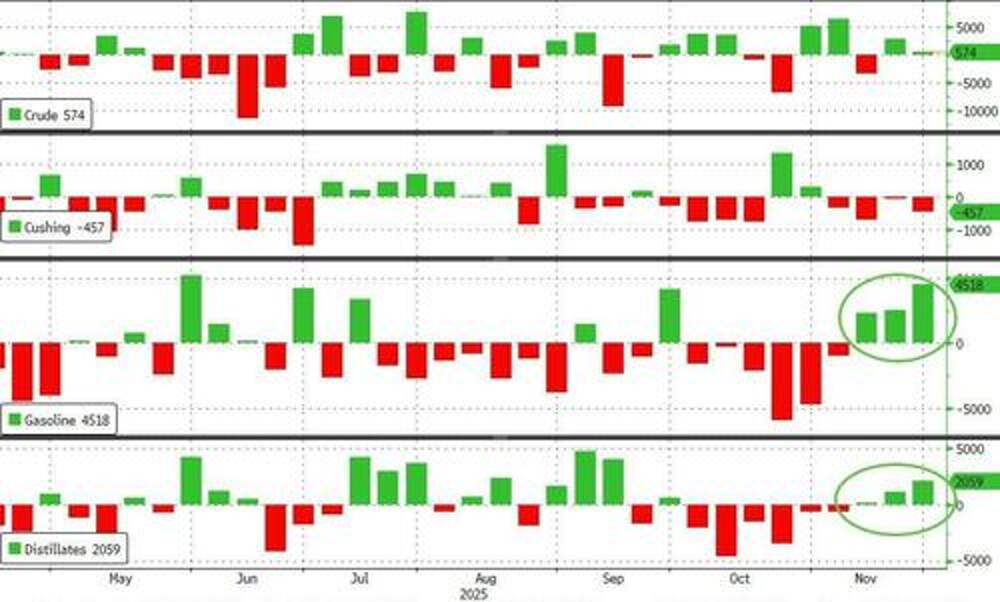 WTI Holds Gains As Cushing 'Tank Bottoms' Loom; US Crude Production At Record High