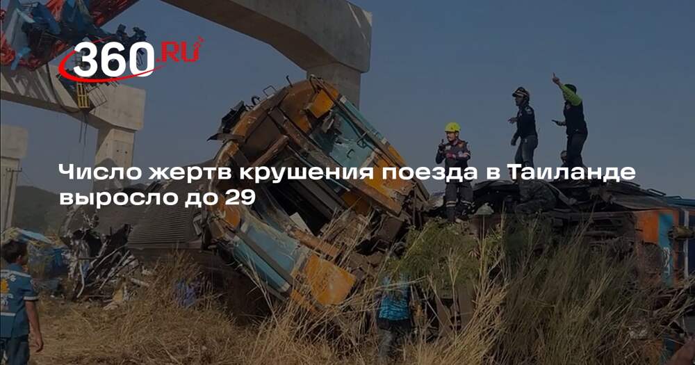 Жертвами крушения пассажирского состава в Таиланде стали 32 человека, а общее количество пострадавших достигло почти ста. Об этом сообщили телеканал Thai PBS со ссылкой на данные регионального управления здравоохранения провинции Накхонратчасима. По данным СМИ, поезд, следовавший по маршруту... Далее