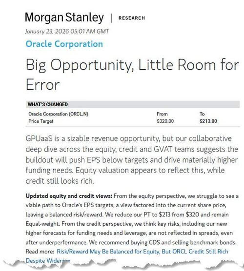 A Panicking Oracle Plans To Raise Up To $50 Billion, As Its Stock And Bonds Crater Just over a month ago, on Dec 17, alongside the news that Abu Dhabi was set to invest billions in OpenAI thus preventing a year-end tech rout, we said that ORCL CDS - which on that day hit the widest... Далее