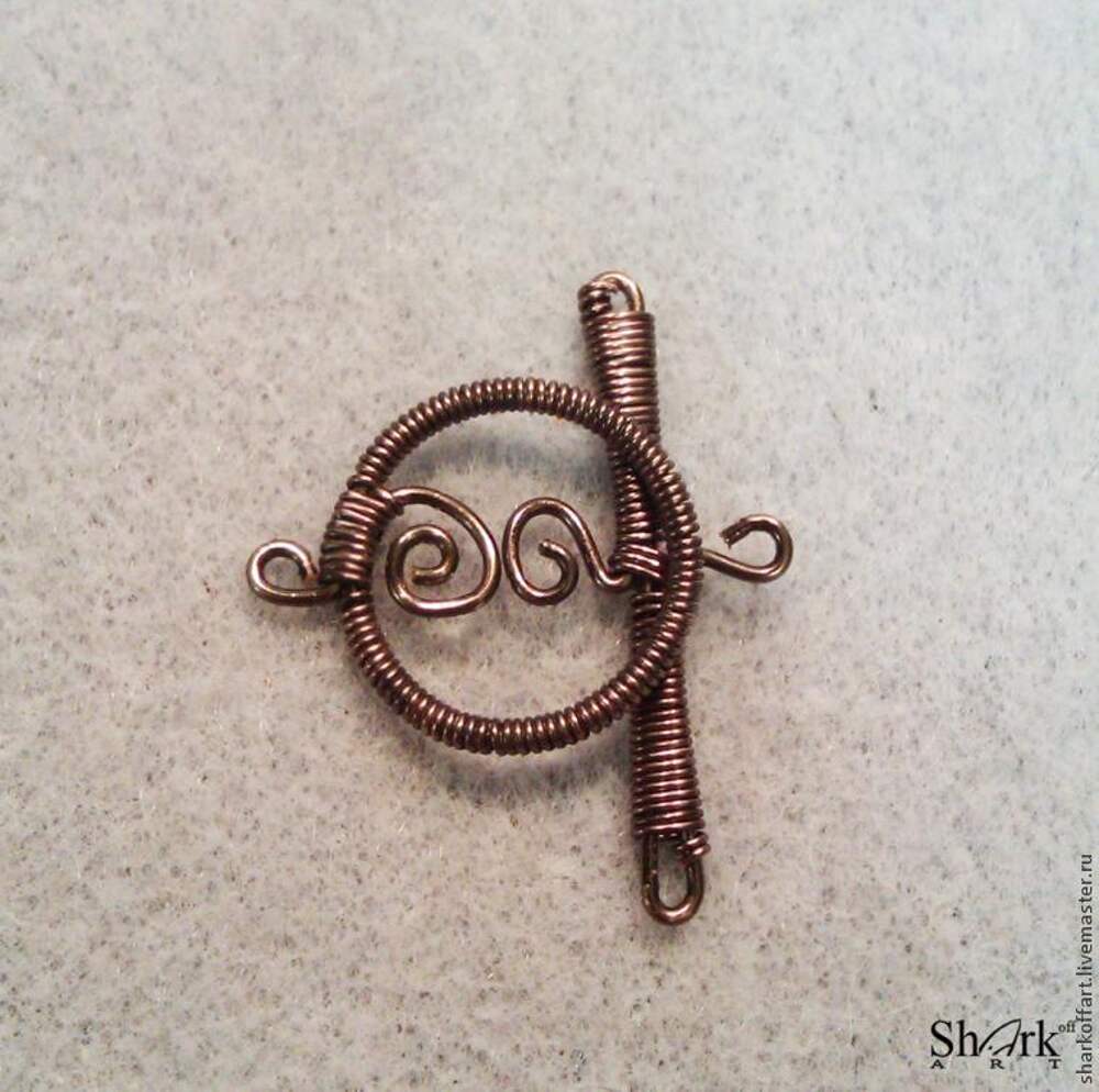 Браслет выполнен по мотивам кельтских узоров. Материал: медная проволока сечением 1,2 мм и 0,7 мм. 1. Скань крутим из проволоки сечение 0,7 мм. Основные детали делаем из проволоки 1,2 мм. Гнем детали по эскизу с запасом в 5 см. 2. Начинаем работу с середины браслета. Все крепления делаем по... Далее
