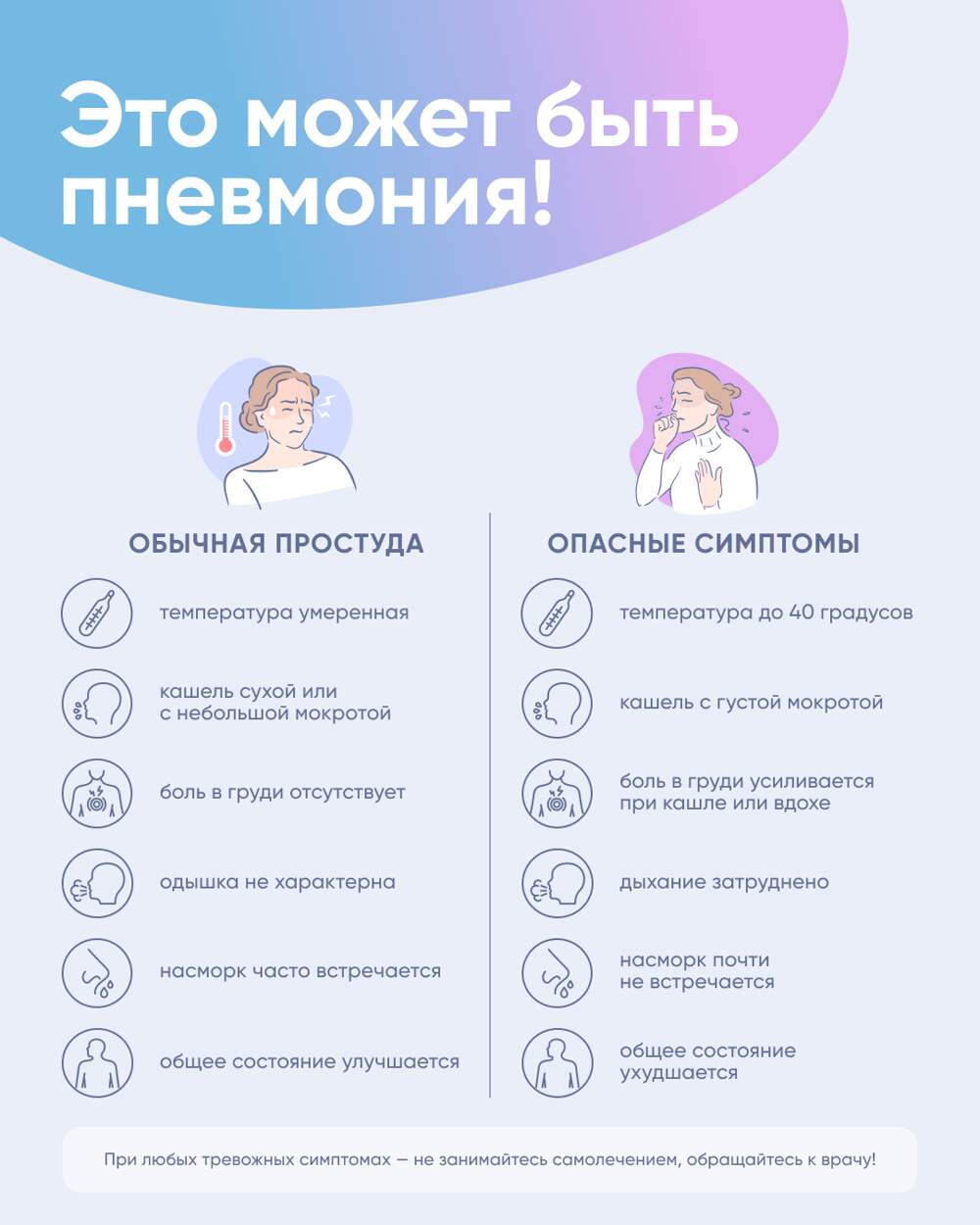 Кашель, температура, слабость… На первый взгляд — обычное ОРВИ. Но иногда за этими симптомами скрывается куда более серьезное заболевание — пневмония. Зачастую пневмония это осложнение от ОРВИ.