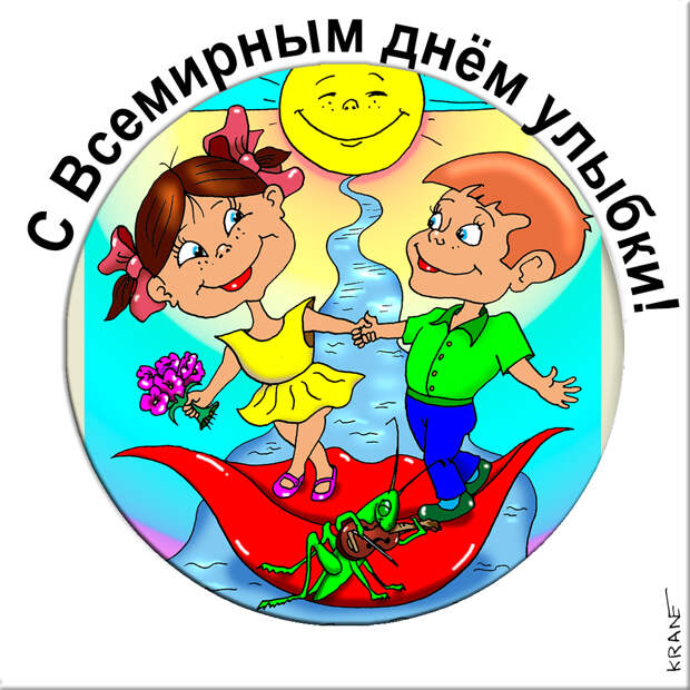 С всемирным днём улыбки! От улыбки станет всему миру светлее, и кузнечики запиликают на скрипках! #Открытки #улыбки #юмор #карикатуры