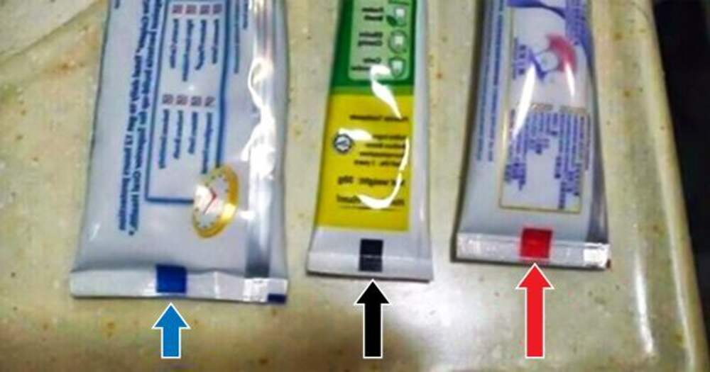 Скорее всего предположение о т.н. "маркировке" квадратами не верно. Просмотрел тюбики пасты у себя дома - есть полоски и квадраты различных цветов (включая коричневый). Видимо, либо это "технологические" отметки используемые при производстве пластиковой тубы,  связанные с калибровкой цвета... Далее
